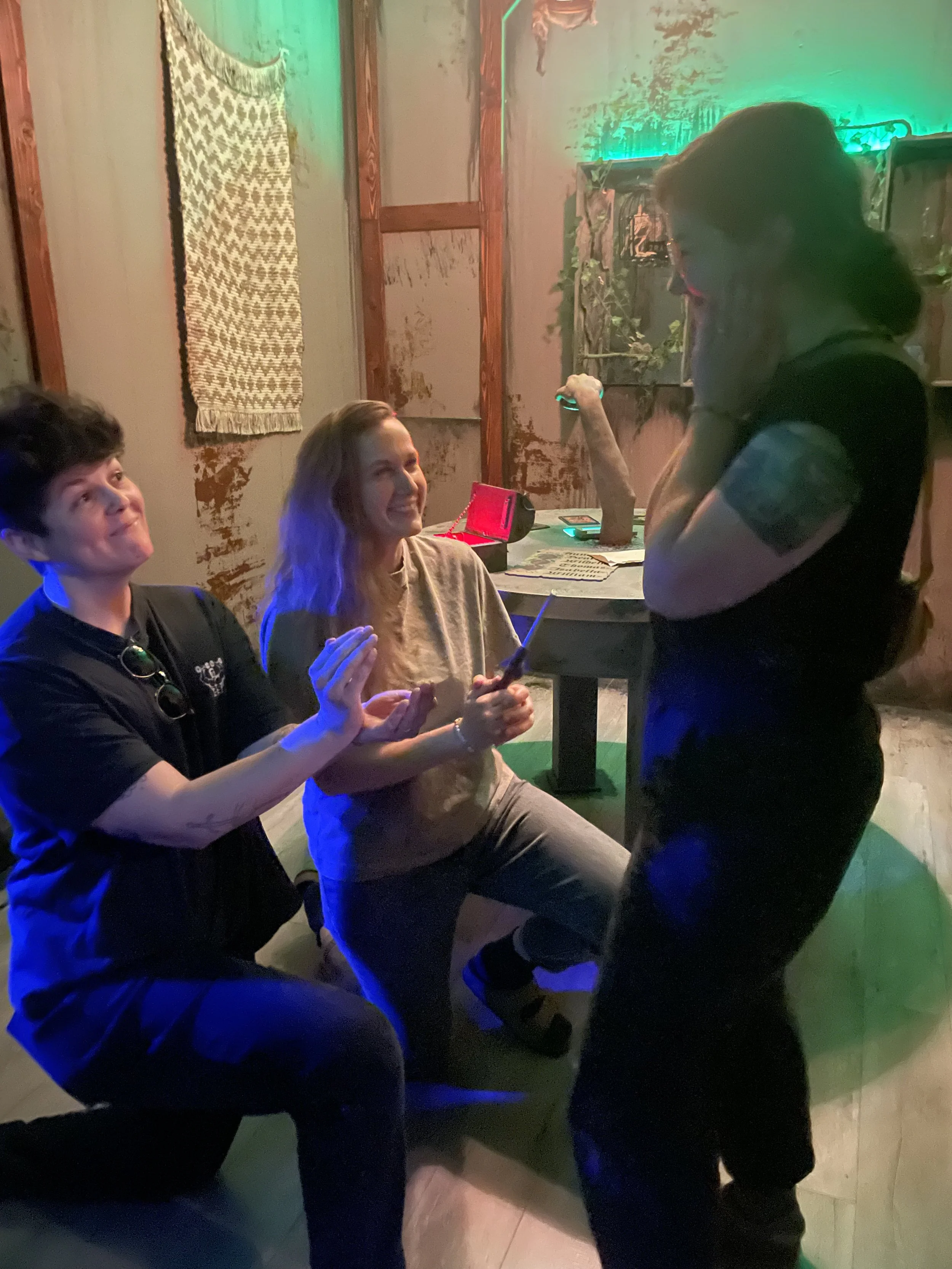 a year into motherhood, Laura and julia take rachel to an escape room to pop the big question. They manage to escape by the skin of their teeth (aka the staff felt bad and helped them) and rachel finds the ring in the final puzzle. She says yes! They all cry!